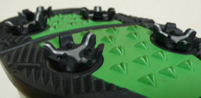 鋲にはグレーのラインのアクセントがついていてちょっとおしゃれです。なによりも気に入ったのは鋲の高さがあることです。adidasのシューズなどもこのくらい高さのある鋲がついていますが、かなりグリップが良いです。その代わり、柔らかいグリーンではくとかなり自分の足跡が気になります。ですが、すぐに芝は復活するので問題はないようです。