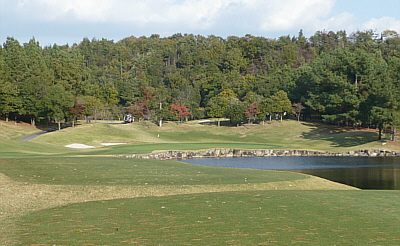 このホールは池が絡んだショートホール。170 Yardくらいでしたが、ちょっと当たりが薄いと池に吸い込まれてしまいそうです...。