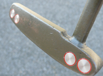 リフィニッシュ前は、フェース面には当時のツアー用の証明である "Small T" のスタンプと、SCOTTY CAMERONの刻印が白で入れられていました。リフィニッシュ前の状態はこちらをご覧下さい。