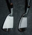 Iron〜PW7 Iron位までは同じ感じで見えますね。左から2番目の8 Ironから若干グースがあるように見えます(感覚的にですが.....)。 ![]() 拡大すると上の写真のような感じです。左がTS-201ですのでやはり右側のMB5002は若干オフセットがあるように見えます。 TS-201の3 IronとMB5002の3 Ironを比較してみました。