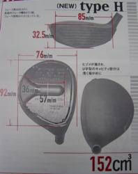 上のデータを見るとフェースの高さは中くらい、重心距離は短くなり、受信深度はもっとも深くなっています。重心角は19度となっていますが、これは是非他のヘッドデータと比べてみたいですね。 フェースの重心位置はボールの重心位置と同じに設定されているとのことです。 ![]() 上の写真はヘッドの溶接前の形状の比較ですが、右のType-Hは蹄の部分までつながっていますね。 ![]() 上のデータを見ると右のType-Hはヘッドの大きさはS.S PROより小さくなっていますね。また今回のものはスルーボアになっていません。小さくなってフェースの高さは低くなっているのですが、1.5mmなのでぱっと見た感じではあまりわからないですね。ヘッドの容積ももちろん13cc小さくなっています。 ![]() 左がS.S PROで右がType-Hなのですが、スイートスポットがこんなに大きくなっています。 今回発売になるラインナップのデータです(データは設計予定値とのこと)。