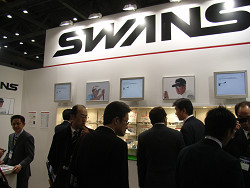 ![]() サングラスメーカーのスワンズのブースをじっくり見てきました。昨年の夏の終わりに上の写真の上のモデルを購入したのですが、レンズの適正など色々聞いてきました。強い日差し、逆光、グリーン面の見やすさ、距離感など色々難しそうです。