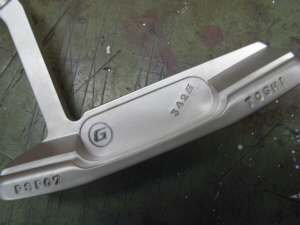 上の写真は今回刻印した部分のクローズアップ写真です。左は今回自分で勝手につけたモデル名「PSP07」、そして真ん中は自分の名前「TOSHI」、そしてキャビティ内にはパターヘッドの重さ「342G」を入れてもらいました。「342G」の「G」は、GOLDさんが削ったことを証明する「G」マークを使ってもらいアクセントをつけました。